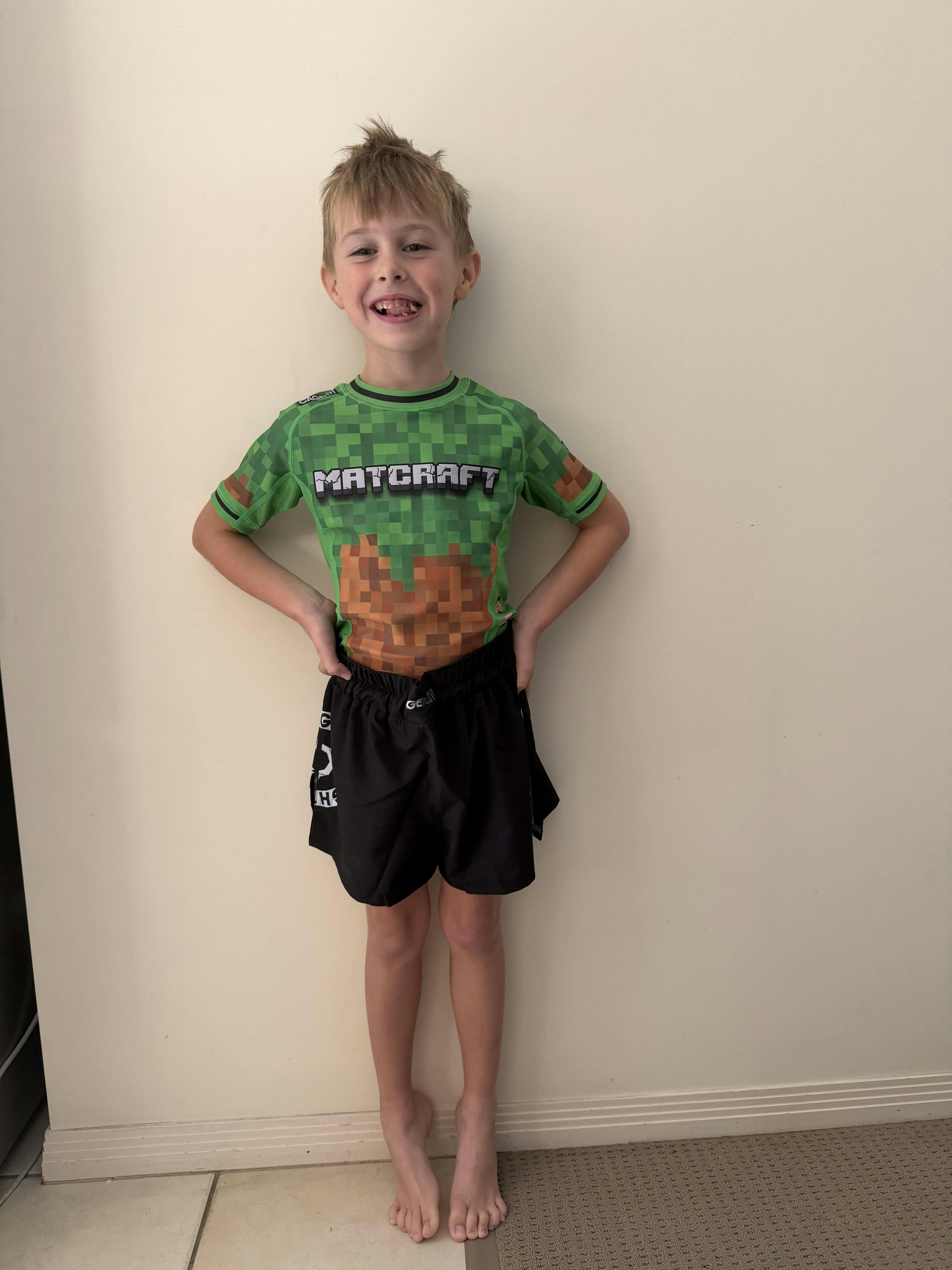Unleash your child’s inner warrior with the Matcraft Kids Range from Cage Kit Fight Wear, a collection inspired by the pixelated adventures of a beloved block-building world. Designed for young fighters who dominate the mats, this range includes the Matcraft Rash Guard and Matcraft Hybrid MMA Shorts, crafted for durability, comfort, and performance during intense training.